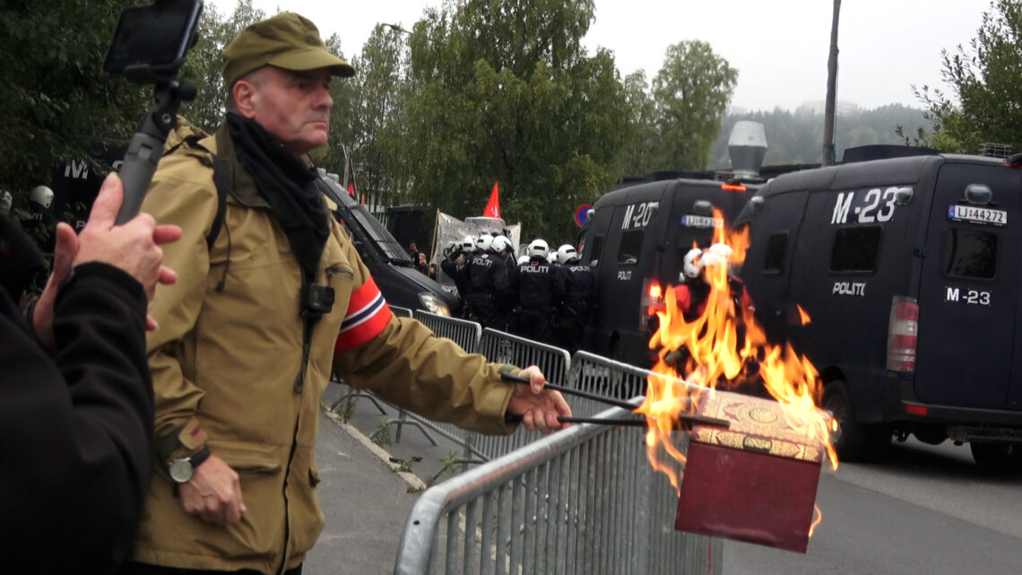 Avisa skriver at Sian skal ha tent på en bok, trolig Koranen. Da forsøkte motdemonstranter å komme seg forbi politisperringene. Politiet måtte ty til gass. Folk trakk seg tilbake etter dette.
