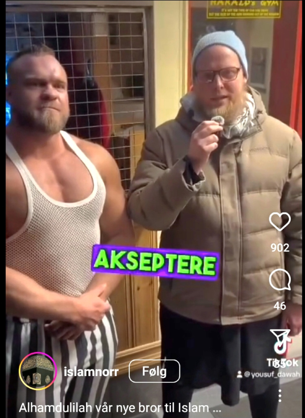 Berg trodde kanskje at islam ville være løsningen for problemer. I hvert fall lot han seg konvertere inn i islam. Hvilket kan være fort gjort. En video viser hvordan konvertitten Yousuf Dawah, tidligere Kent, leder bodybuilderen gjennom trosbekjennelsen. Og det er egentlig alt som skal til: Vipps, så er du muslim.