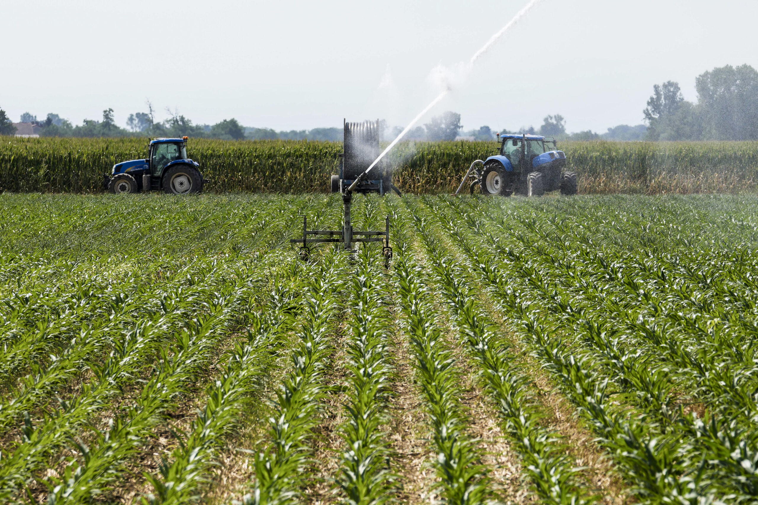 En maisåker vannes i Zelo Surrigone nord for Milano 12. juli 2022. Foto: Luca Bruno / AP / NTB