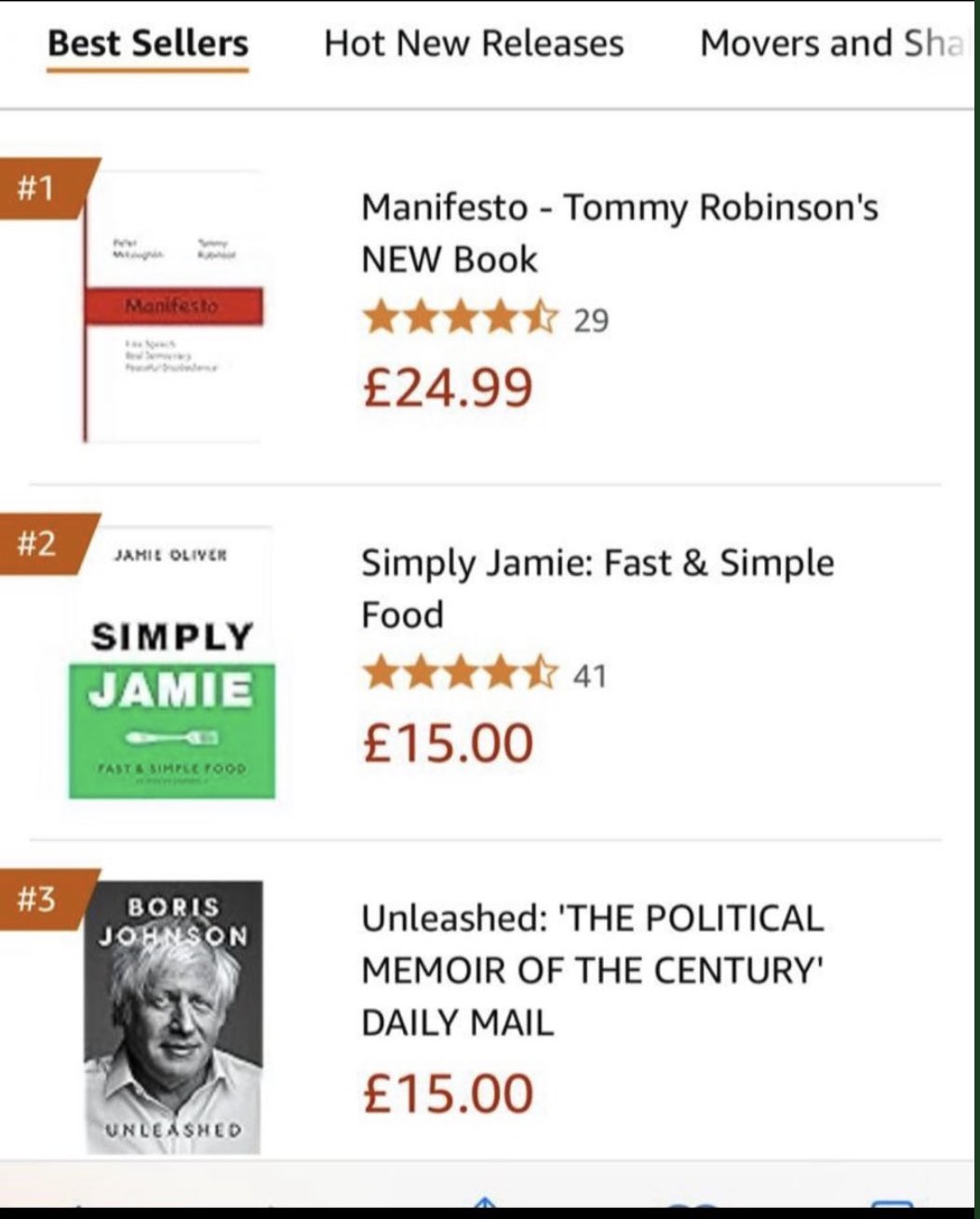 Det har gått hett for seg på den britiske venstresiden etter Tommy Robinsons nye bok «Manifesto» toppet bestselgerlistene på Amazon første uken, før den ble utsolgt.