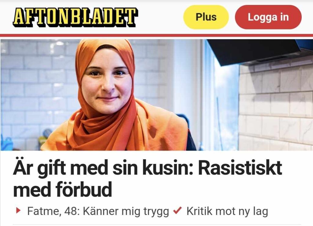 Forslaget om å forby søskenbarnekteskap fra 1. juli 2026 kommer etter en lang etterforskning og har som mål å bekjempe æresvold og de alvorlige genetiske defektene som oppstår etter generasjoner med søskenbarnekteskap. Men Aftonbladet har selvsagt vinklingen klar: