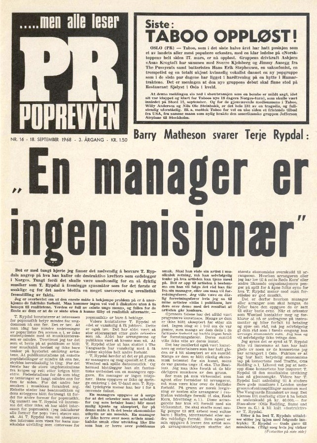 Impresario Barry Matheson følte seg tvunget til å svare. Og sannelig fikk han hele forsiden.