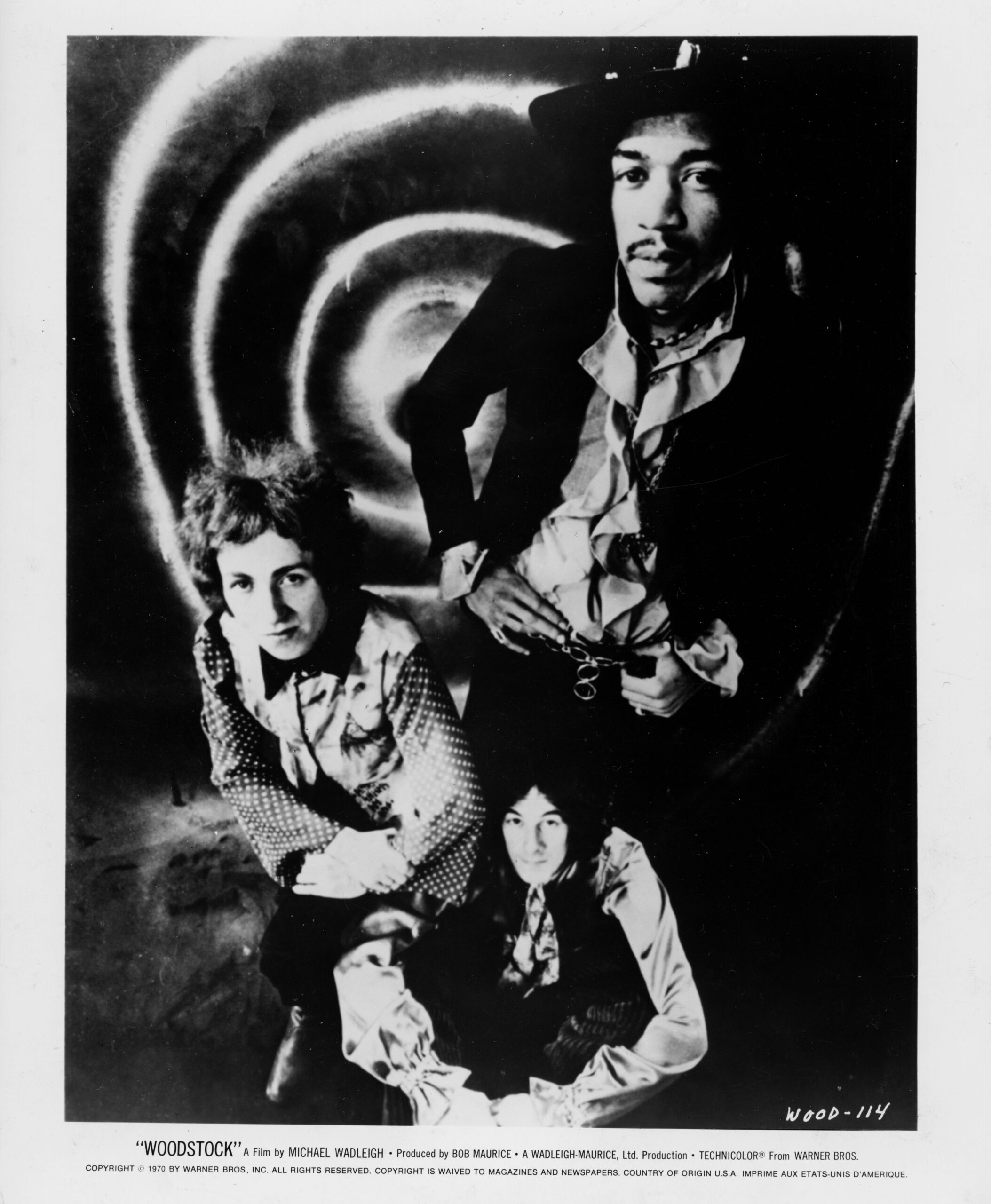 Jimi Hendrix og hans Experience, et av de heteste navnene i 1968. Her et promofoto tatt i 1968, men brukt i forbindelse med Woodstock-filmen i 1970. Foto: Warner Brothers.
