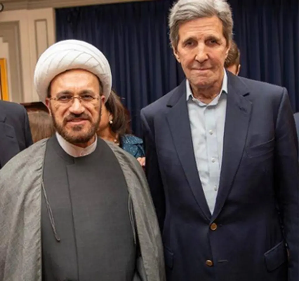 Imam Ali Elahi sammen med tidligere utenriksminister John Kerry under presidentvalgkampen i 2020. Kilde: George Washington University.