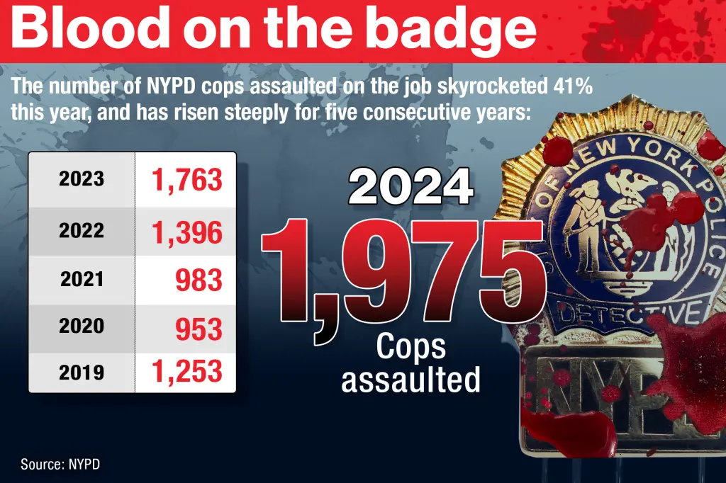 For bare to dager siden rapporterte New York Post at angrep på NYPD-betjenter har skutt i været til «enestående nivåer», med en økning på 41 % hittil i år sammenlignet med i fjor og 60 % siden 2019.