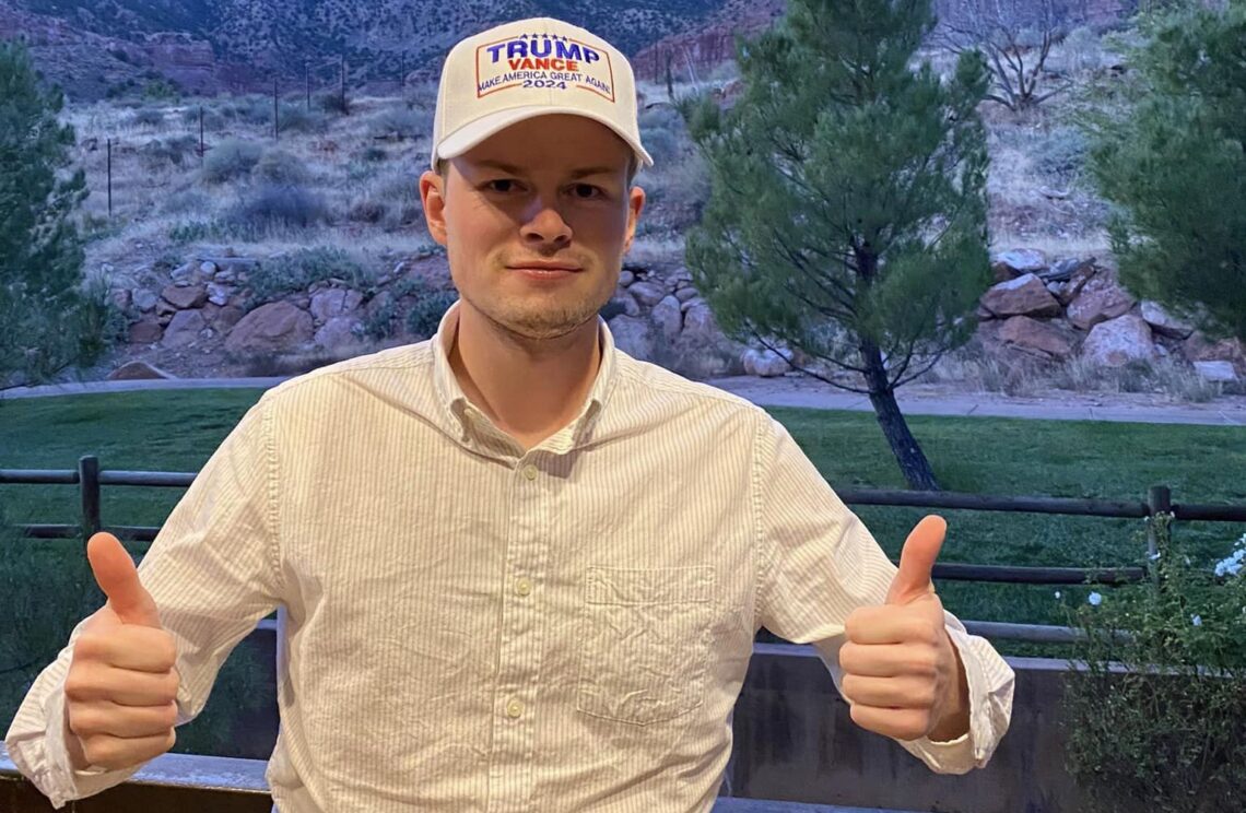 Robin Tveit, lokalpolitiker i Senterpartiet, er på rundtur i USA og bidar i Trump-kampanjen. 23-åringen er ikke overrasket over den store Trump-støtten blant unge norske menn.
