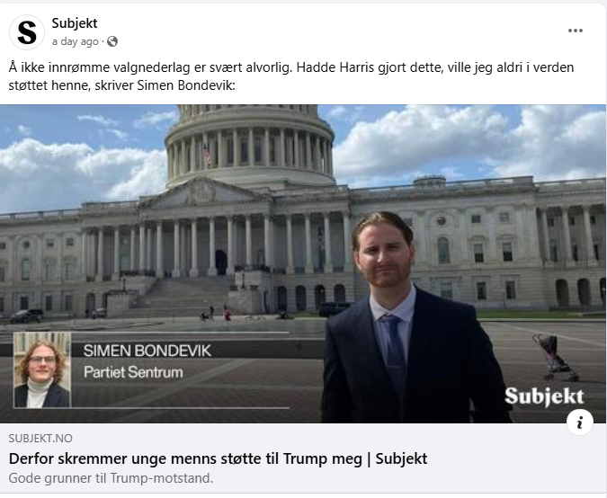Simen Bondevik vet ingenting om amerikansk politikk hvis han tror at det å ikke akseptere et valgresultat er noe nytt, men likevel får han en mikrofon i Subjekt slik at han kan skjelle ut unge norske menn som faktisk vet en ting eller to om det virkelige liv.