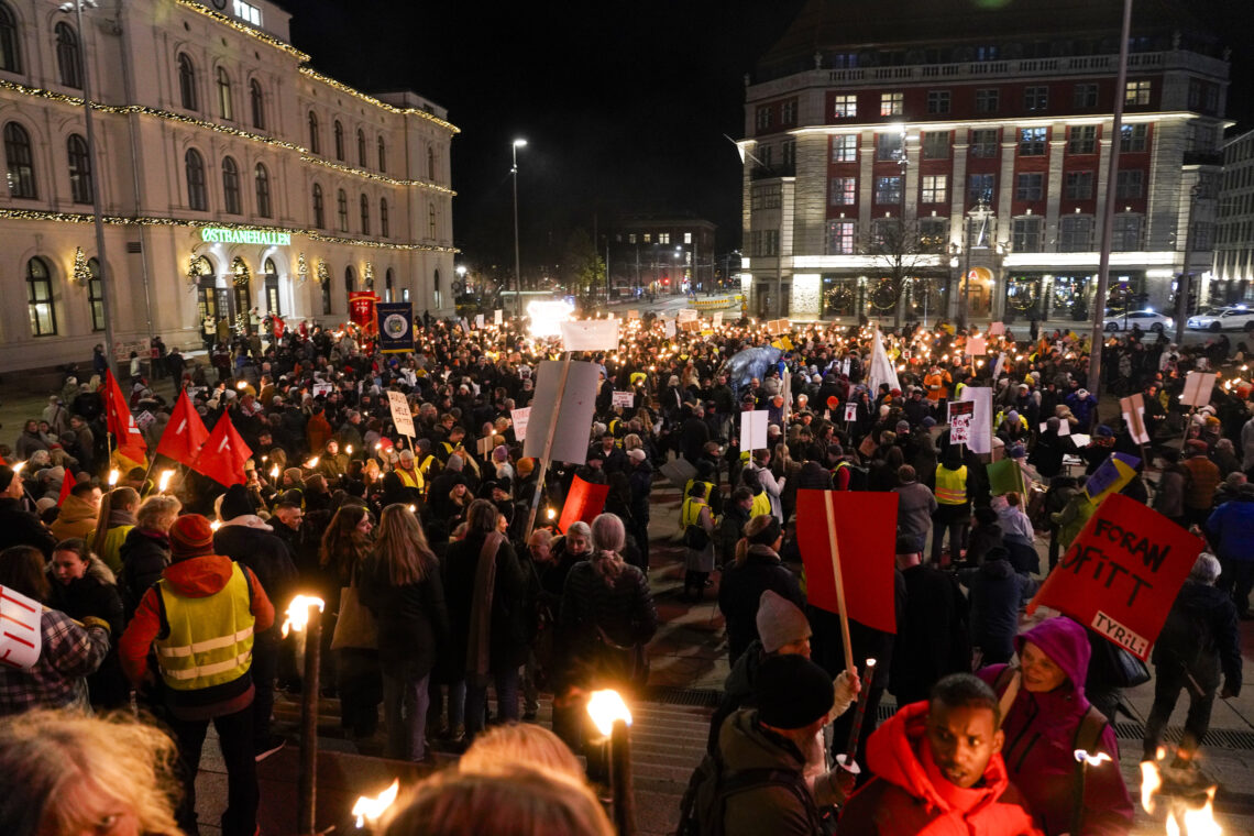 Fakkeltoget i Oslo startet ved tigeren utenfor Østbanehallen og endte utenfor Stortinget med appeller og slagord.