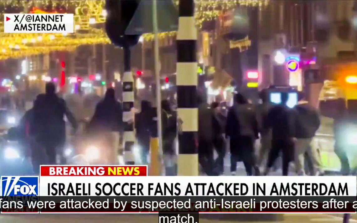 En antisemittisk muslimsk mobb jaktet på israelske fotballfans som var i Nederland for å se det israelske laget Maccabi Tel Aviv spille mot nederlandske Ajax på Johan Cruyff Arena i Amsterdam.