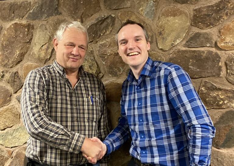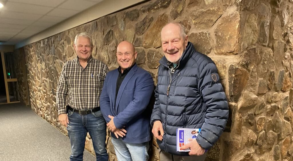 GLEDE: Det var gledelig stemning da lokallaget ble stiftet i Lom kommune. Ordfører Kristian Frisvold til venstre, og Roy Magne Kanestrøm i midten. Foto: Privat