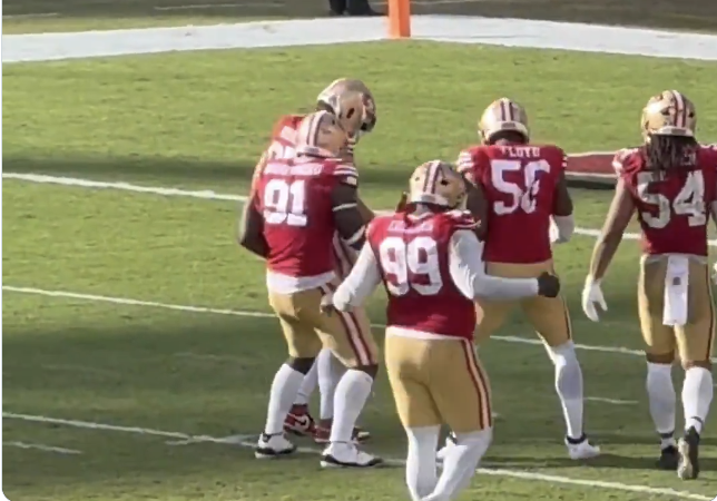 Først ut var Bosa, som fremførte sin versjon av Trumps morsomme lille «double-fisted low pump» etter at han hadde taklet Tampa Bay Buccaneers’ Baker Mayfield i kampen 49ers vant.
