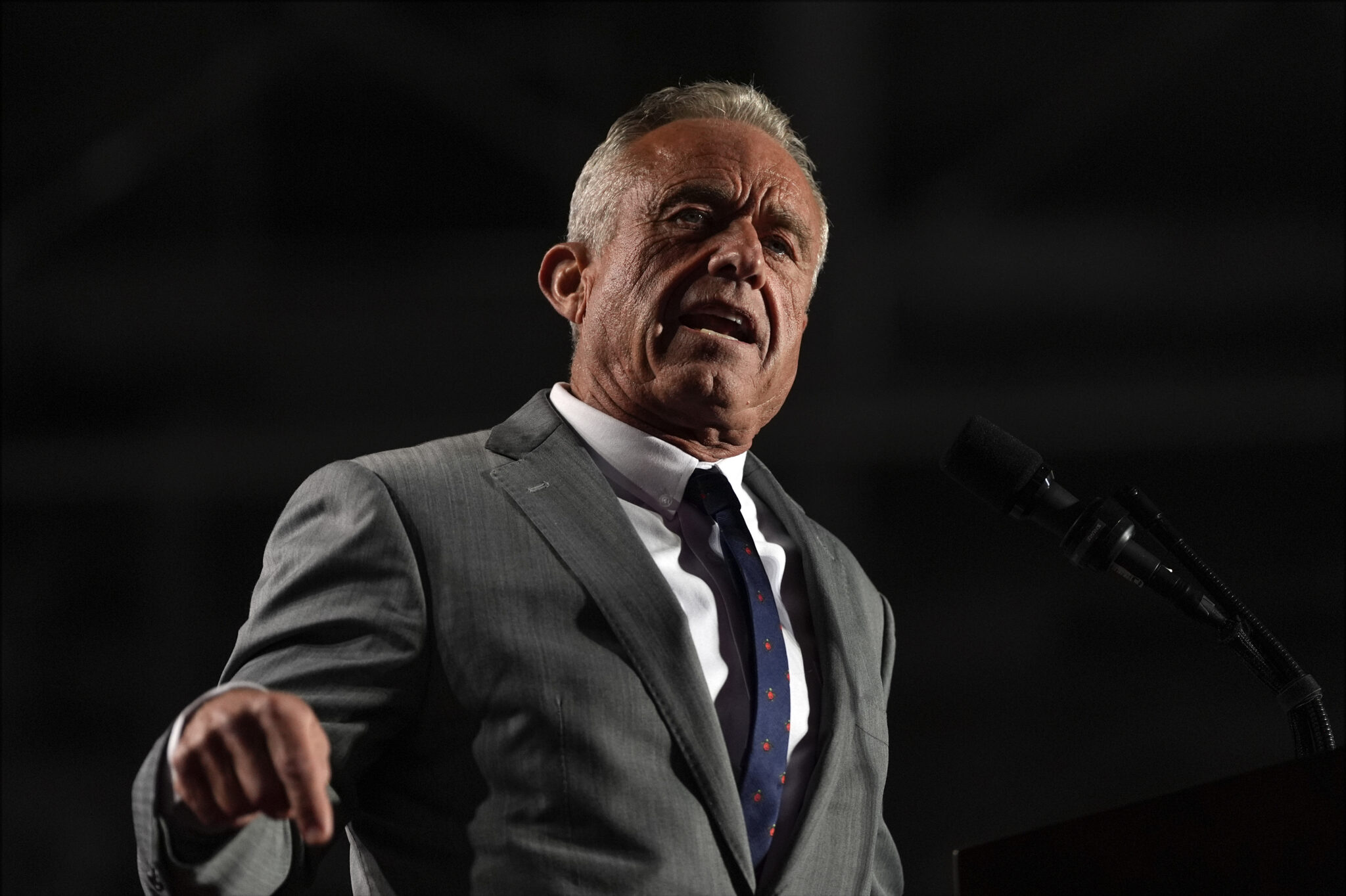 Robert F. Kennedy jr. taler før Donald Trump under et valgkampmøte i Warren, Michigan, den 1. november 2024. Foto: Julia Demaree Nikhinson / AP / NTB.
