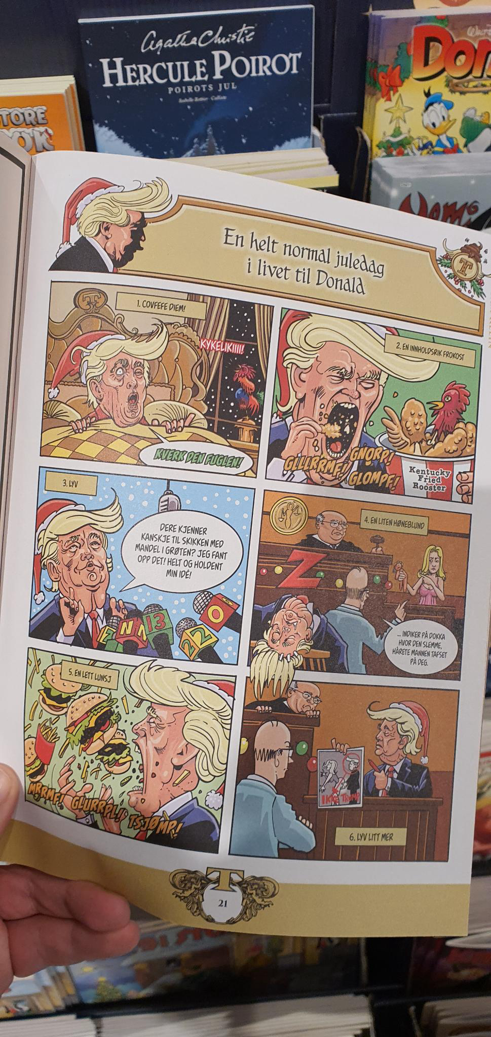 Noen fikk en smart idé: Trump er gjenvalgt. Mediene flommer over av stoff om Trump. Han er en baby-president som velter i seg hamburgere. Her blir det fest og mulighet til å tjene penger, som sist.