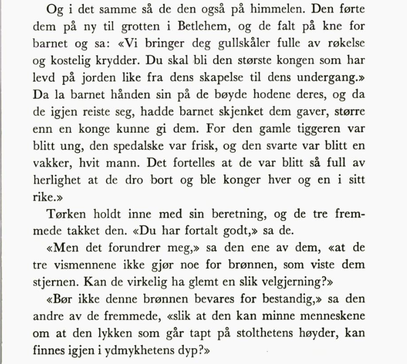 Det er mange av fortellingene som er velkjente, og skrevet på en vakker måte, kritikerrost i lang tid og er blitt en fast del av vår kultur. Både historier som «Barnet i Betlehem», «Den hellige natten», «Legenden om Keiserens syn» og «Stjernenes sang» er alle kjente historier fra boken.