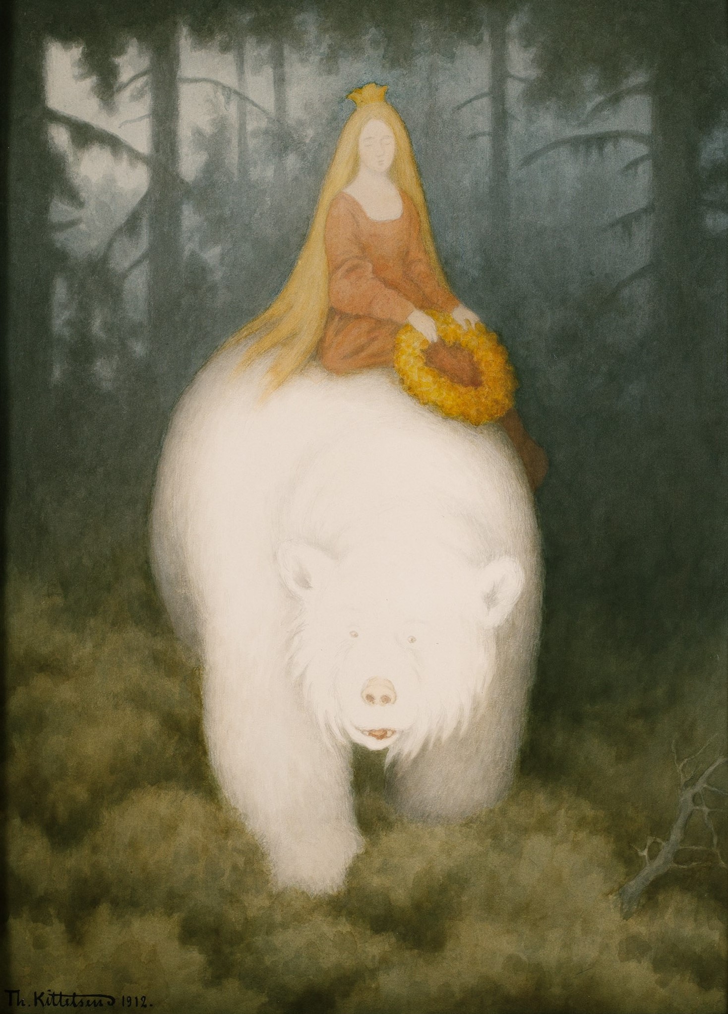 Som kjent er dette bildet utført i 1912 av Theodor Kittelsen (1857-1914)., som en illustrasjon til eventyret om Kvitebjørn kong Valemon. Teknikk og format er blyant, akvarell og gouache på papir, 65 x 48 cm. Den 13. oktober var det Dagens motiv her på Document.