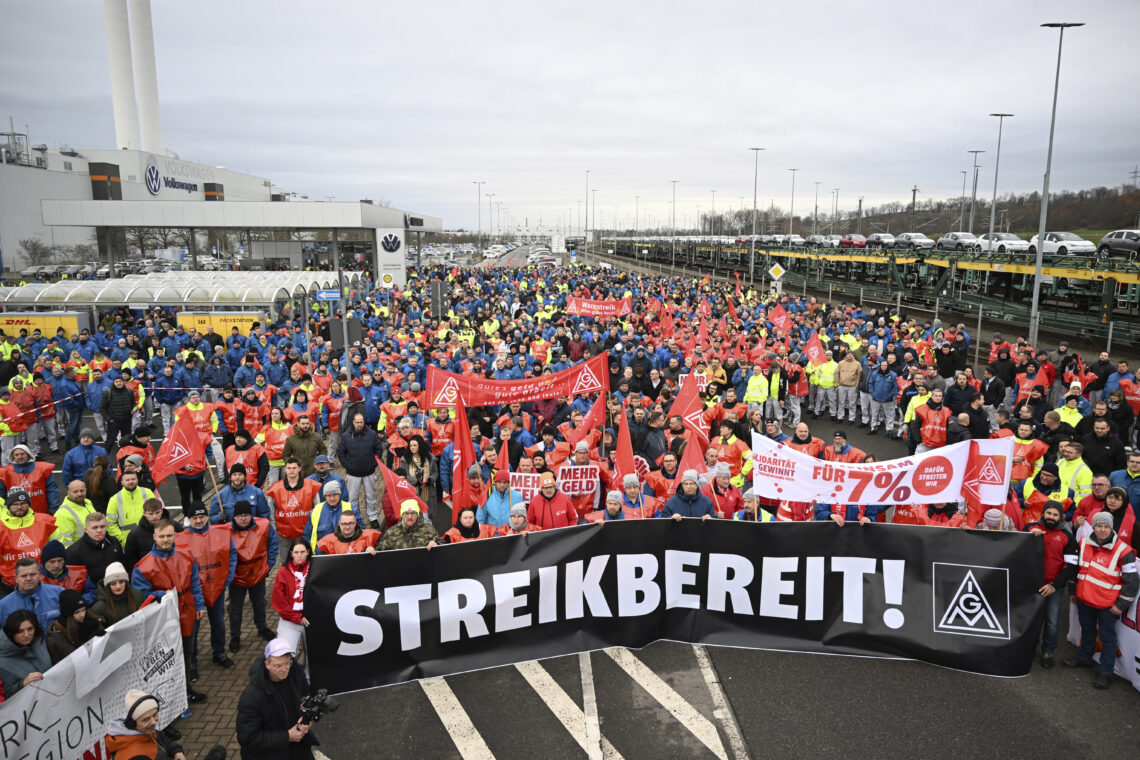 Mandag morgen streiket fabrikkarbeidere i Wolfsburg i to timer, mens kveldsskiftet planla å gå tidlig fra jobb.