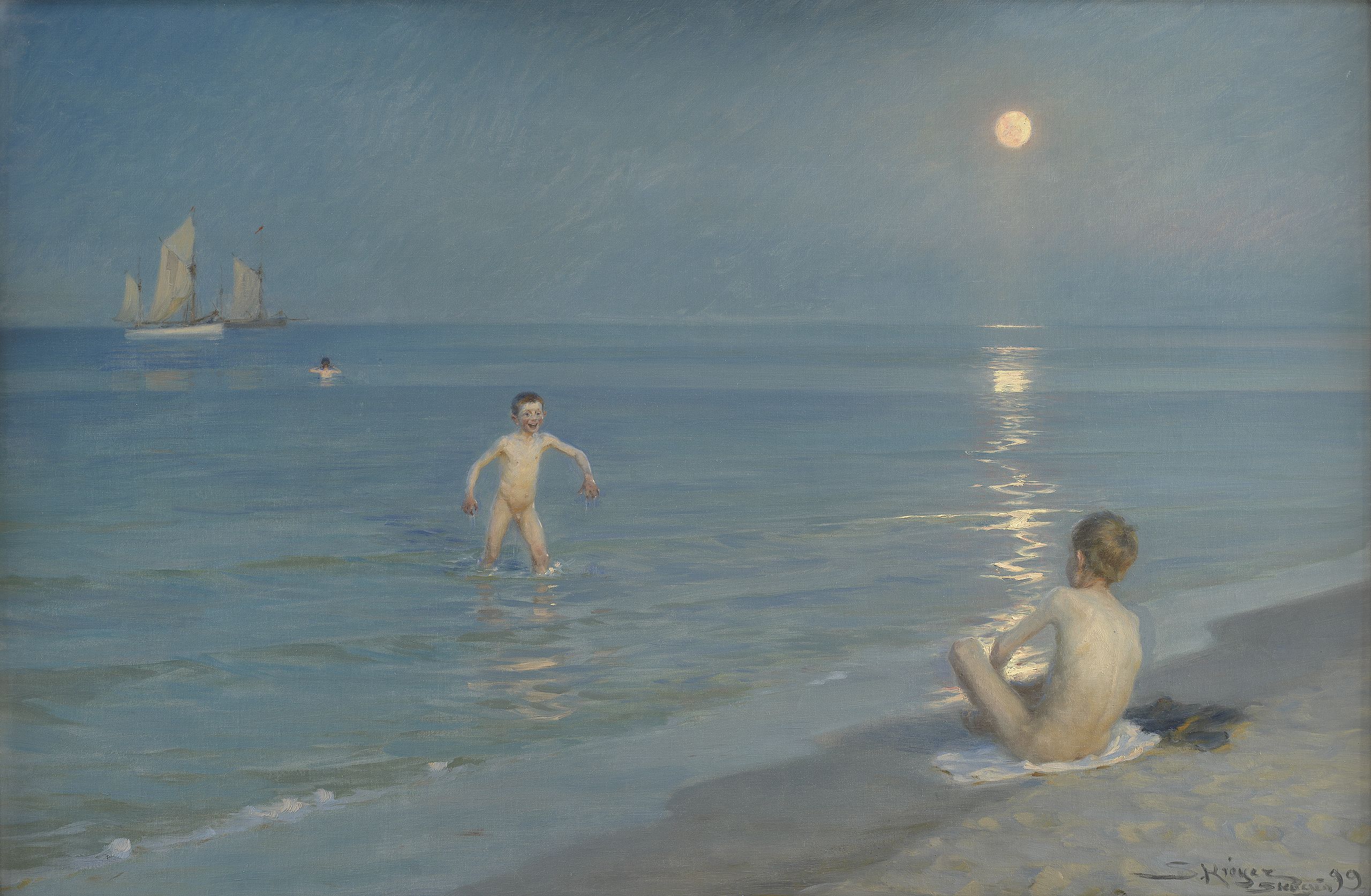 Dette bildet kan man trygt betegne som blå-maleri, som vi finner mange eksempler på i Krøyers bilder fra Skagen.