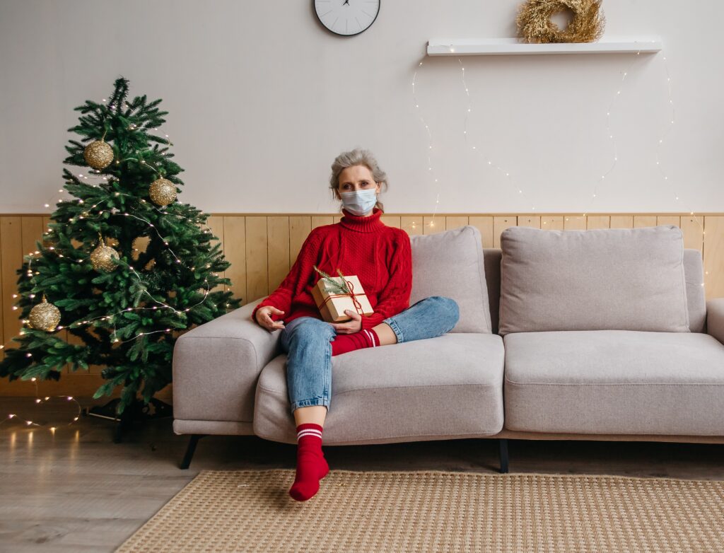 Vi ser for oss at hun sitter alene hjemme på julaften med maske, selv om det ikke er noen der.