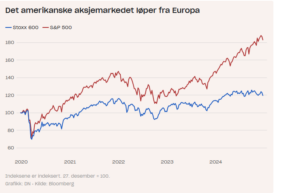 Et eksempel er børskursene: I fjor vokste den amerikanske S&P-indeksen med hele 25 prosent. Den europeiske Stoxx 600-indeksen steg kun med cirka 5 prosent.