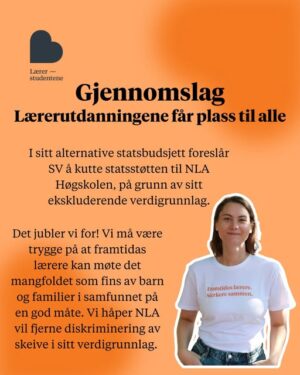 Men «alle» inkluderer tydeligvis ikke de som driver private kristne lærerhægskoler, og som har andre meninger enn woke-mafiaen. Lærerstudentene jublet på sin LHBTQ-inspirerte Facebook-side da SV foreslo å kutte ut all statsstøtte til NLA Høgskolen.