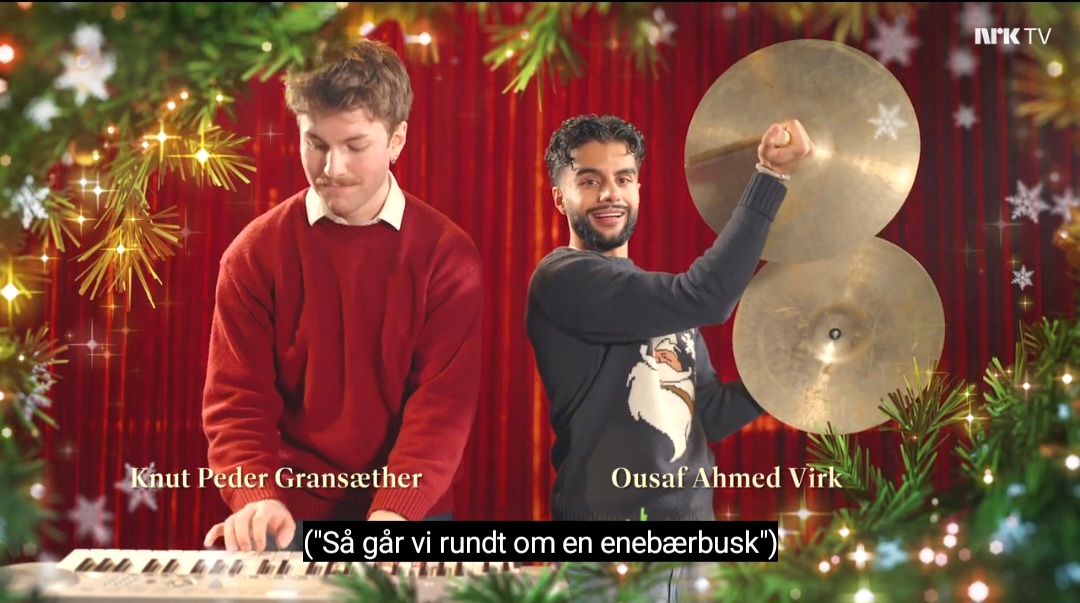 Ousaf Ahmed Virk (t.h.) spiller julemusikk i Kvelden før kvelden, sammen med Knut Peder Gransæther. Skjermdump NRK 23. desember 2024.