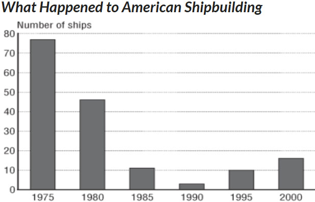 Mellom 1987 og 1992 «solgte amerikansk skipsbyggingsindustri bare åtte kommersielle skip på over 1000 bruttotonn, sammenlignet med 77 skip bare i 1975», ifølge en studie fra 2015.