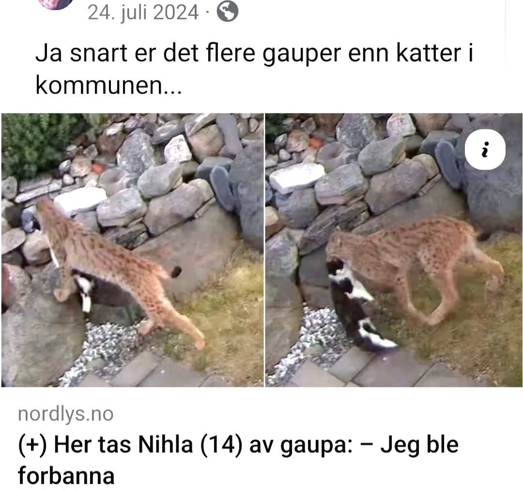 Snart er det flere gauper enn katter i kommunen, skriver en privatperson fra Kvænangen, som deler reportasje i Nordlys. Skjermdump