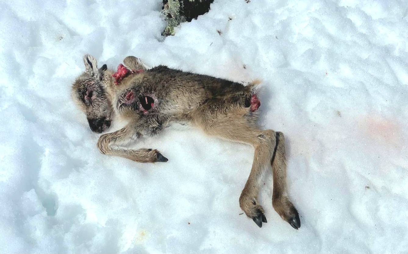 En av de 16 reinkalvene som ble dokumentert drept av bjørnene som Odd Bjørnar Bjørkås skjøt, forteller reingjeteren som har tatt bildet. Foto: Lars-Jon Gråik.