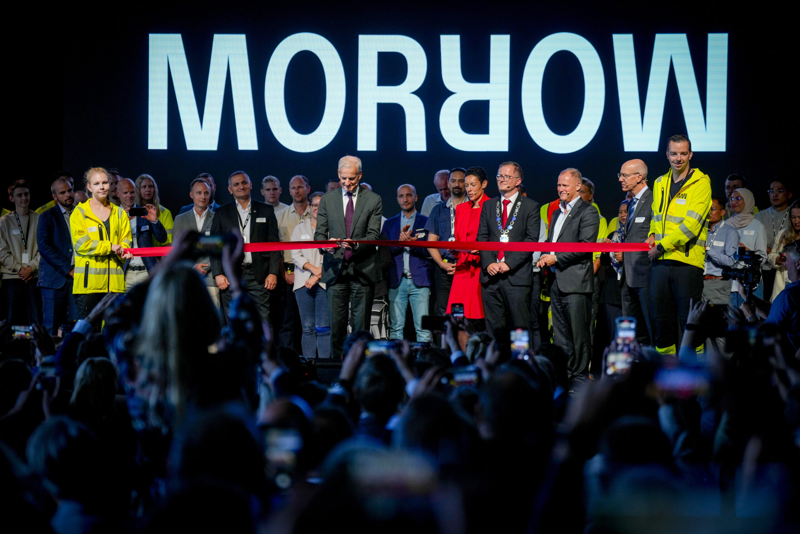 Morrows batterifabrikk i Arendal åpner offisielt med statsminister Jonas Gahr Støre til stede den 16. august 2024. Foto: Heiko Junge / NTB