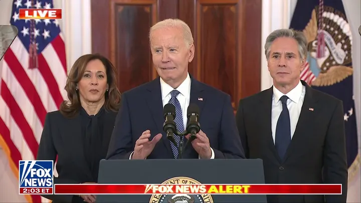 President Biden sa onsdag at amerikanske statsborgere vil være blant dem som vil bli løslatt av Hamas som en del av våpenhvileavtalen med Israel, samtidig som han nektet å gi Donald Trump æren for å ha trappet opp presset mot terrorgruppen.