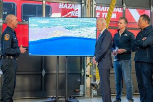 USAs president Joe Biden og Californias guvernør Gavin Newsom overvåker skogbrannene i Sør-California 8. januar 2024 . Kilde: Wikimedia Commons.