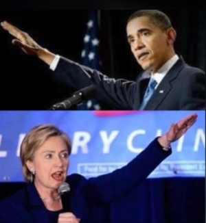 Noen skriver på X at Musk egentlig bare utførte en Kamala Harris-hilsen. Man kunne nevnt Clinton og Obama i samme slengen. Vel, Clinton bruker på bildet nedenfor venstrearmen, så hun kan kanskje slippe unna.