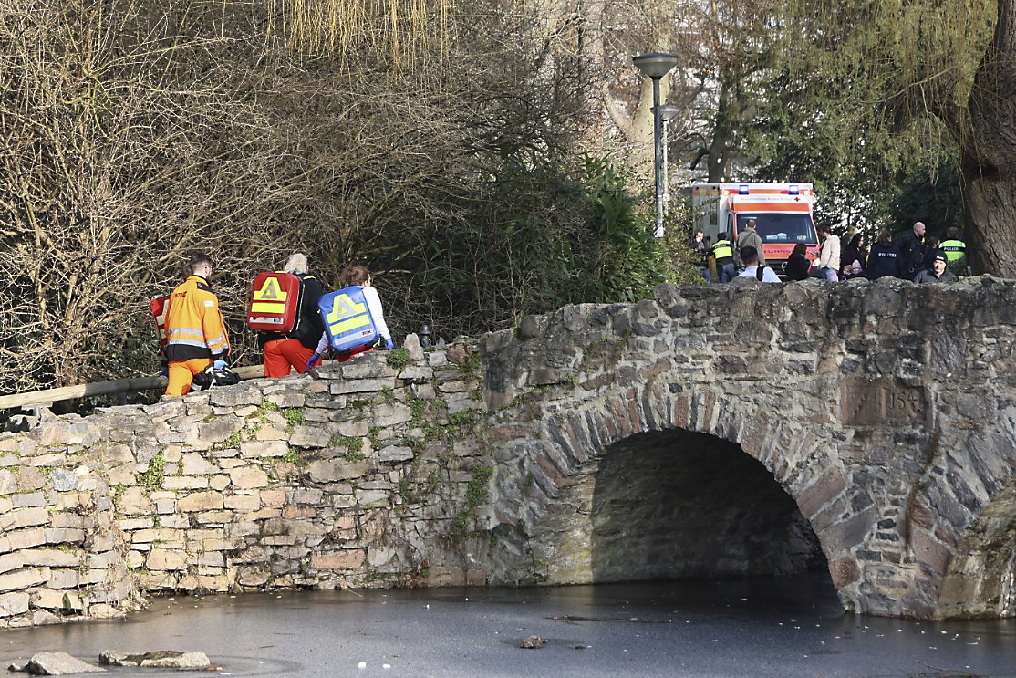 Utrykningspersonell på åstedet for knivdrapene i Aschaffenburg i Tyskland den 22. januar 2025. Foto: Ralf Hettler / DPA via AP / NTB.
