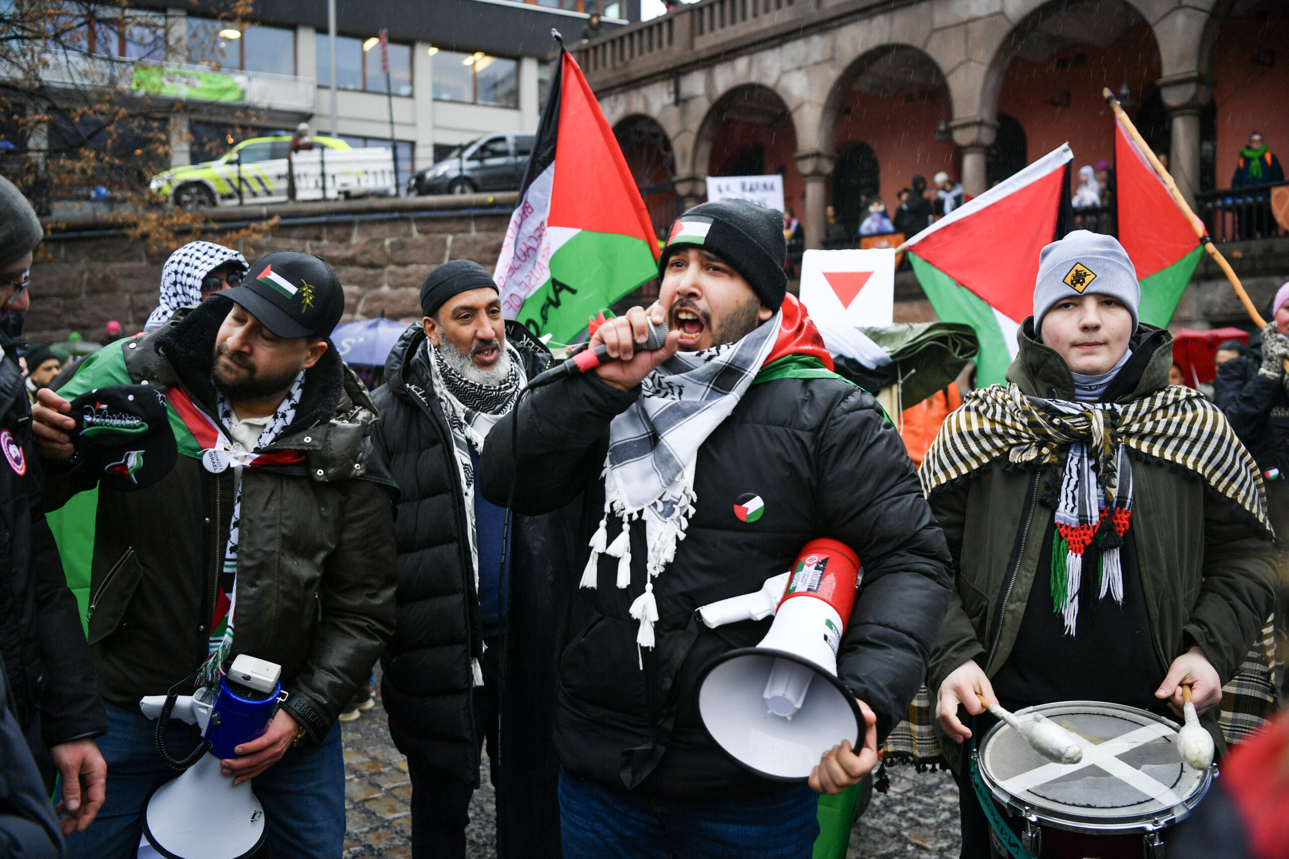 Palestinakomiteen i Oslo og Den Palestinsk-Norske Foreningen arrangerer demonstrasjon på Youngstorget i Oslo den 2. mars 2024. Foto: Rodrigo Freitas / NTB.
