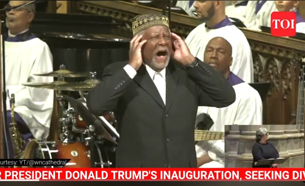 President Donald Trump måtte ikke bare høre en biskop skjelle ham ut i nasjonalkatedralen, men også på at en muslim fikk rope «Allahu akbar!» inne i den viktigste kirken i USA. Imam som skulle bidra ved innsettelsen dagen før, ble skiftet ut i siste øyeblikk; han har nektet å kalle Hizbollah en terrorgruppe.