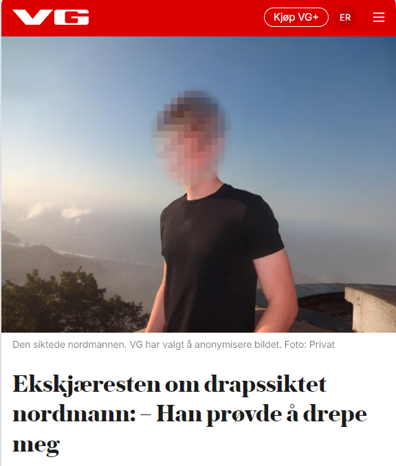 VG velger konsekvent å omtale den drapssiktede og etterlyste som «nordmann» og har sladdet bildene av ham.