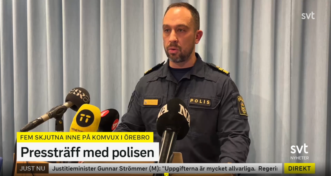 Først kom beskjeden om at situasjonen ikke var livsfarlig. Få minutter etterpå kom kontrabeskjeden fra politiet. Det herjer fullt kaos i Örebro i Sverige.