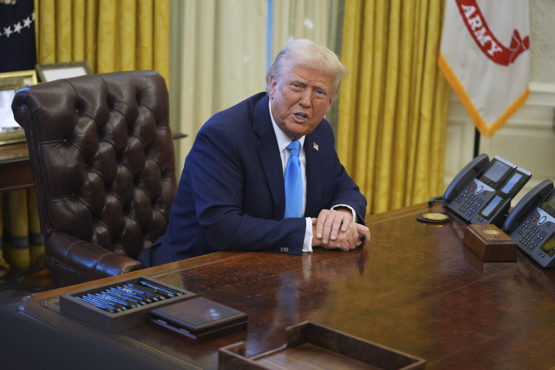 – Jeg signerer dette, og det er et veldig mektig dokument, men forhåpentligvis kommer vi ikke til å måtte bruke det, sa Trump etter at presidentordren var undertegnet.