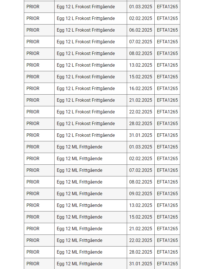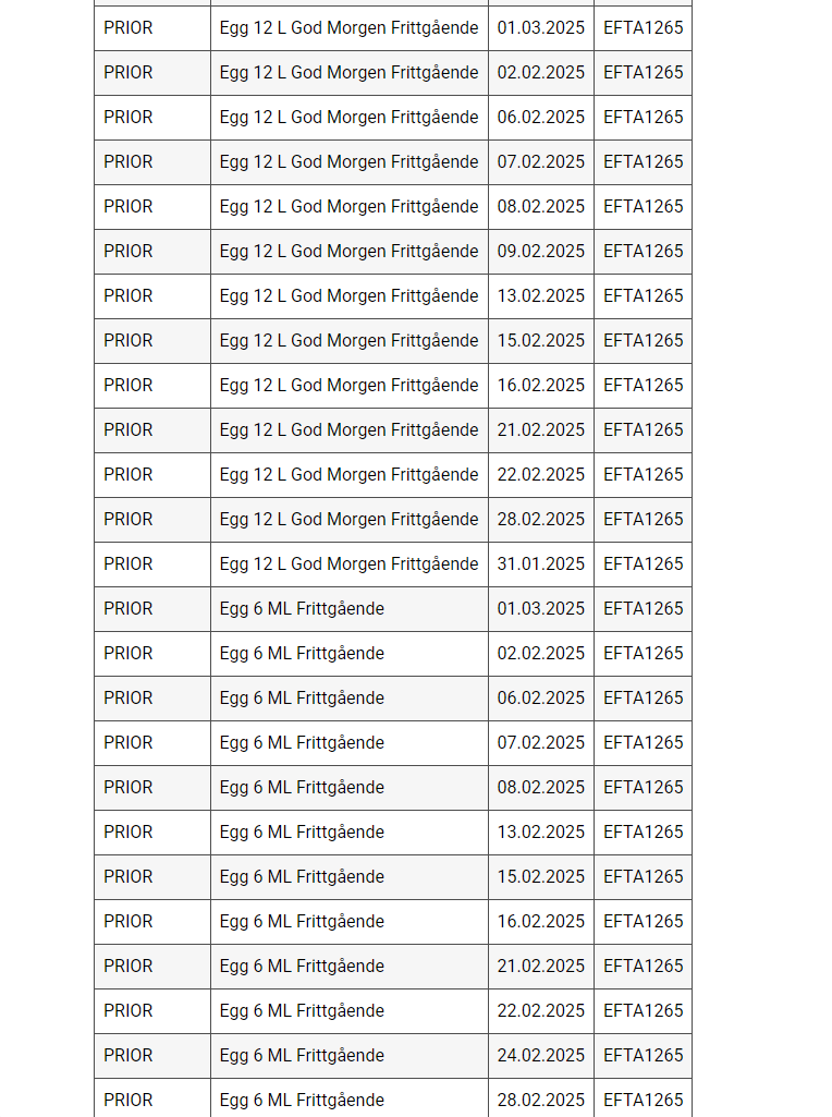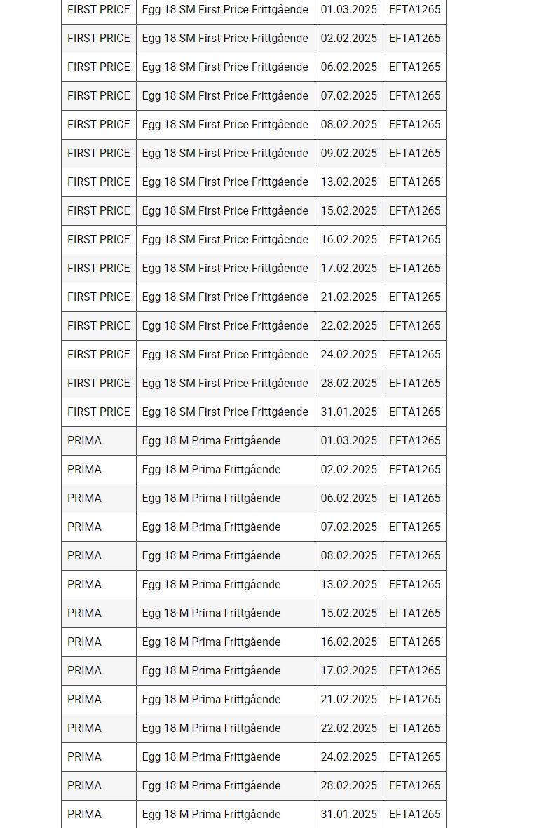 - 16.02.2025, kun egg produsert mellom kl 07:45 og kl 08:15