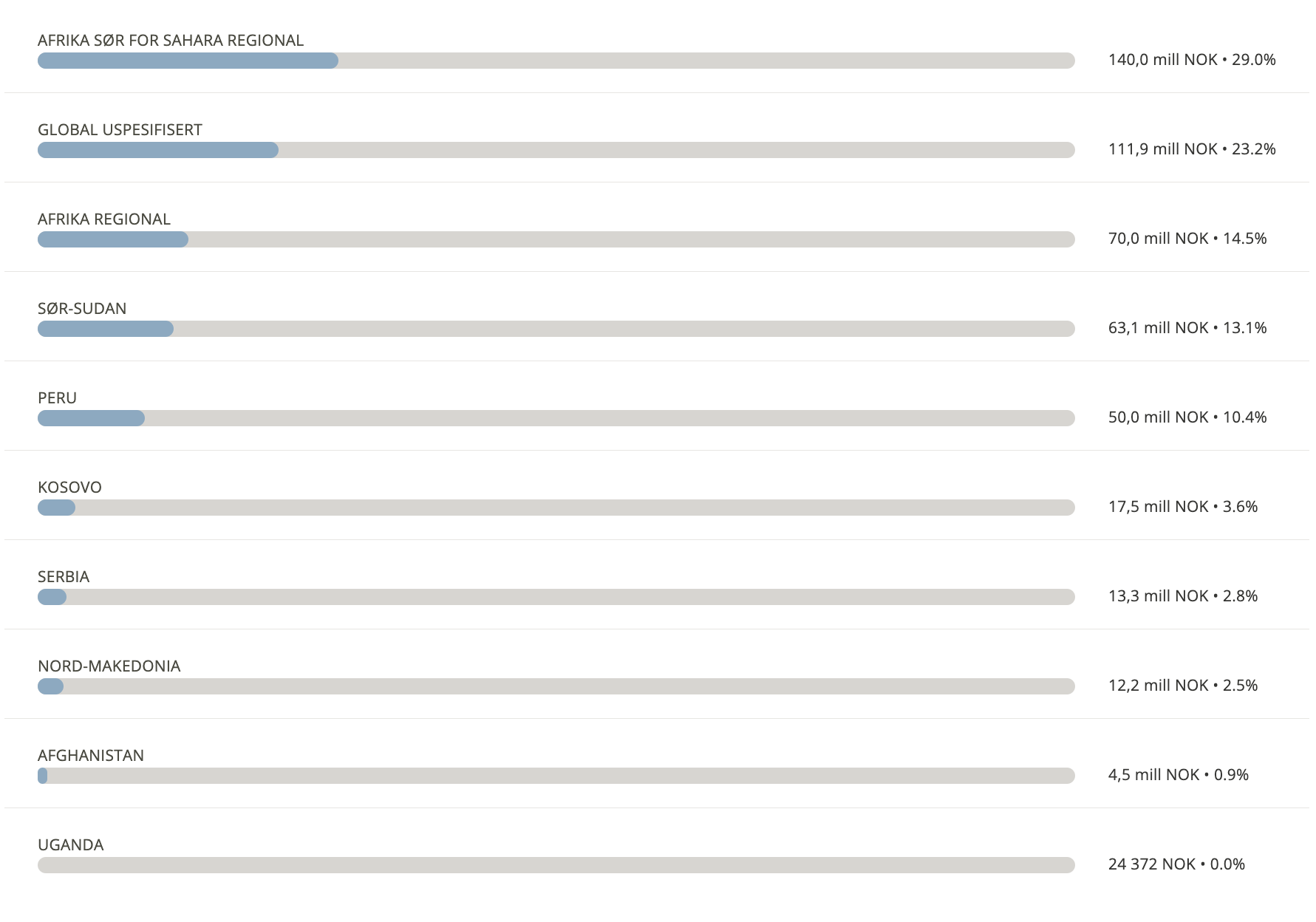 Millionbeløpene overført fra Norad til USAID har til en viss grad vært øremerket prosjekter i utvalgte regioner og land. Trykk på bildet for større versjon. (Graf: Norad)