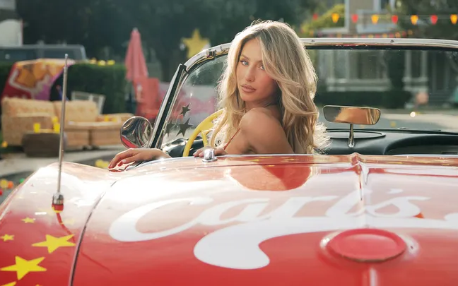 Årets reklame viser en bikinikledd Alix Earle som går gjennom et nabolag fylt med restene etter en fest.