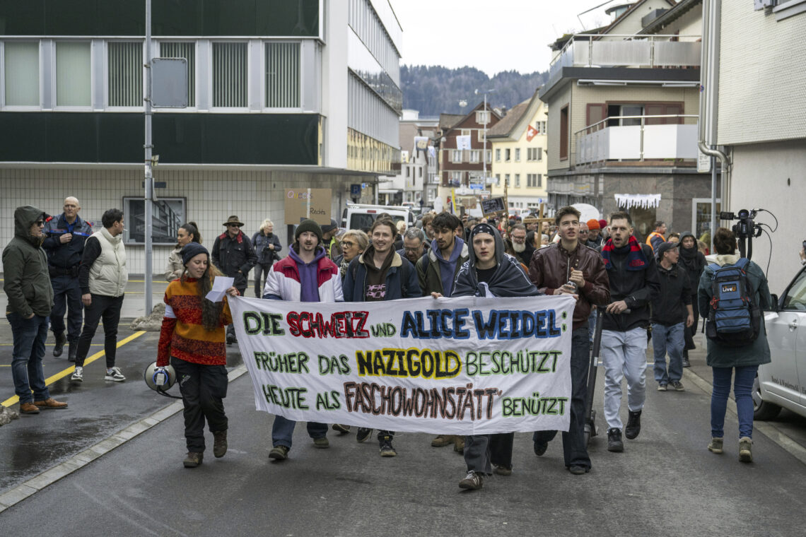 Fem personer er pågrepet etter en demonstrasjon mot lederen for tyske AfD, Alice Weidel, i byen der hun bor i Sveits.