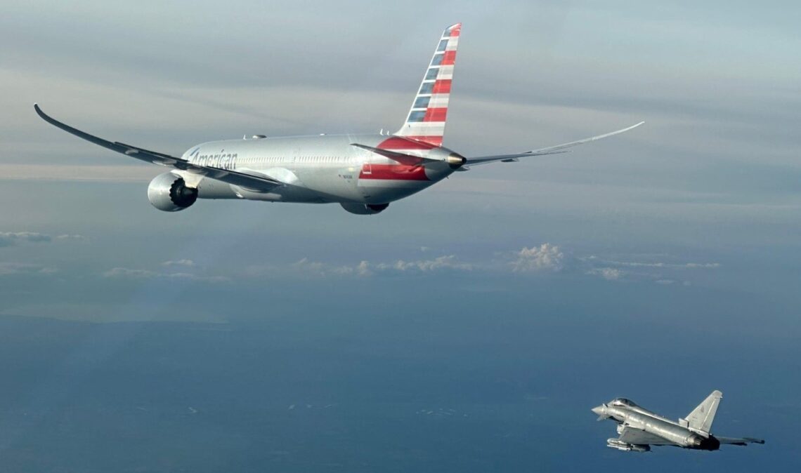 🚨AMERICAN AIRLINES FLIGHT NOW BEING ESCORTED BY EUROFIGHTER JETS TO ROME