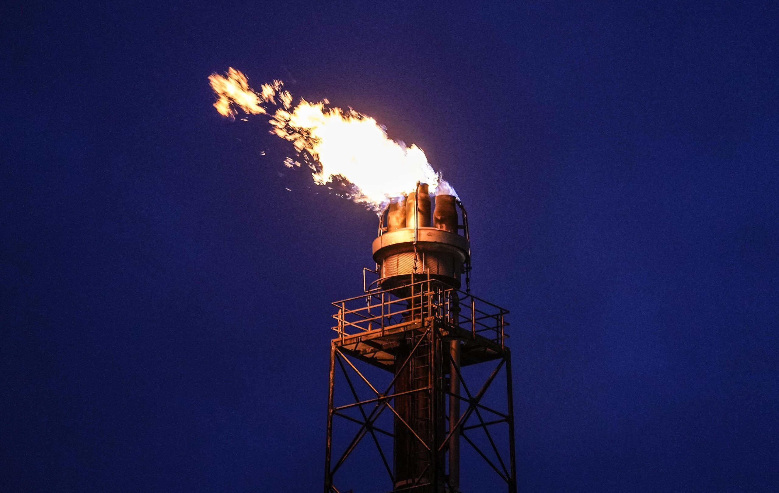 Energiselskapet BPs raffineri i Gelsenkirchen i Tyskland fakler gass den 5. april 2022. Foto: Martin Meissner / AP / NTB.