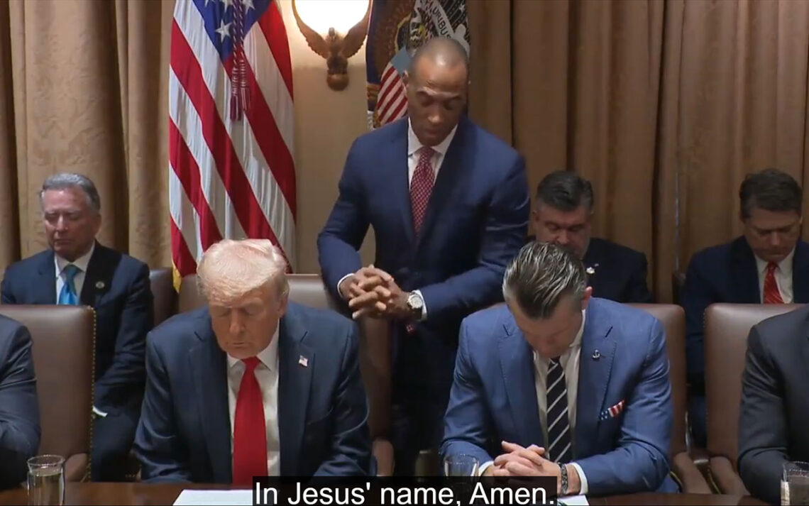 Bolig- og byutviklingsminister Scott Turner ledet Trump og statsrådene i bønn. Han takket Gud «for at Han har salvet oss til å gjøre denne jobben».