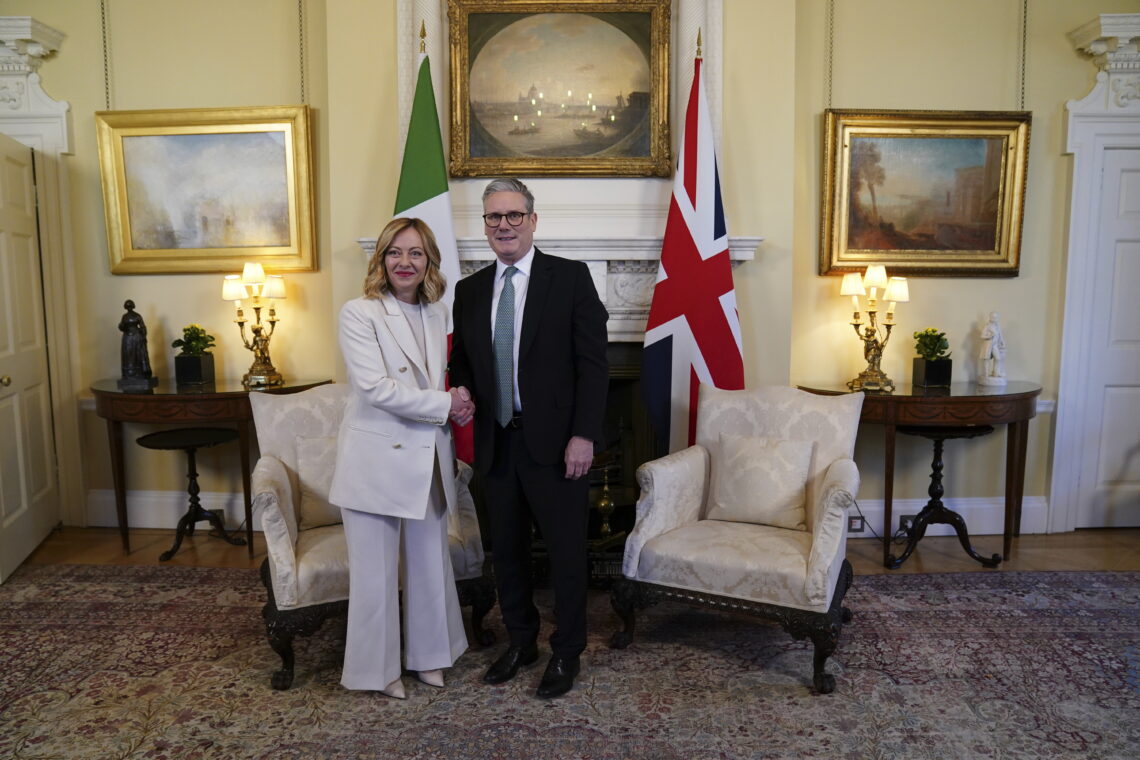 Hun takket Starmer for å ha samlet europeiske ledere til krisesamtaler om Ukraina, og sa at Storbritannia og Italia er «svært samkjørte når det gjelder målet vi ønsker å oppnå, nemlig en rettferdig og varig fred i Ukraina».