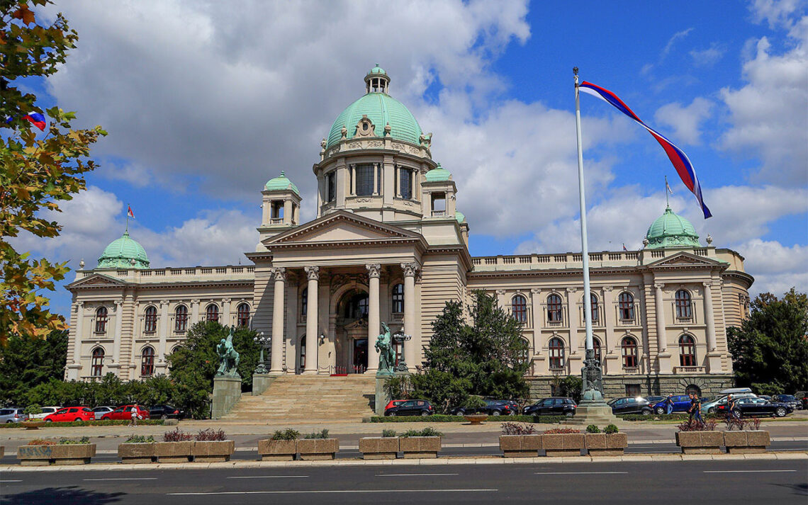 Beograd: Opposisjonelle parlamentsmedlemmer protesterte tirsdag morgen mot regjeringens politikk ved å kaste røyk- og tåregassgranater inne i Serbias parlament.