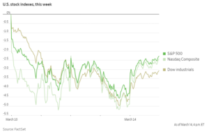 Den teknologitunge Nasdaq-indeksen steg med 2,6 prosent, men stengte likevel 2,4 prosent lavere enn ved inngangen av uka.
