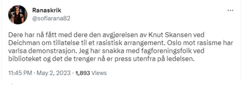 Forrige gang vi ble kansellert av Deichman, fant vi dette på en politikers hjemmeside: