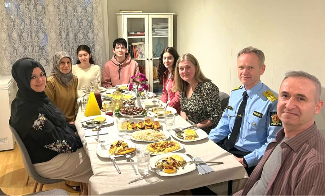 «Takk til Håkon Skulstad og Sidsel Aarnes Linden som var gjest hos en vert i dag. Hyggelig kveld», skriver Ramadangjest på Facebook. Håkon Skulstad er til daglig politidirektør, det vil si leder for norsk politivesen, og stilte i uniform. Mens Sidsel Aarnes Linden er seniorrådgiver i politidirektoratet, ifølge det hun selv oppgir på Facebook.